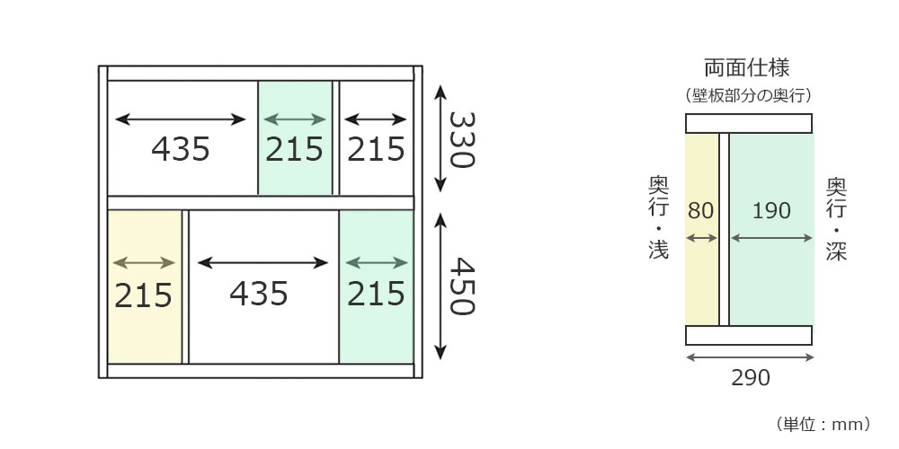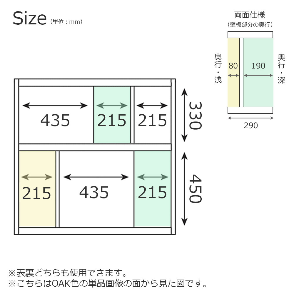 ※表裏どちらも使用できます。こちらは単品画像と同じ面から見た図です。壁板部は奥行きが表裏で異なります。