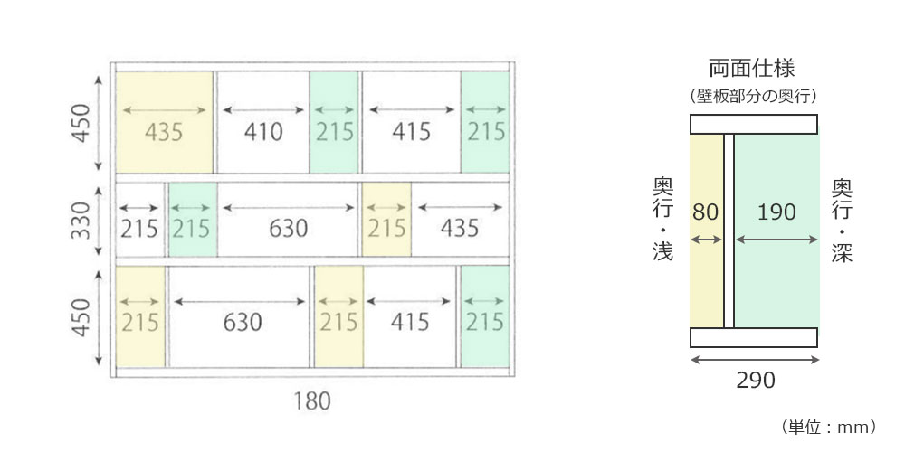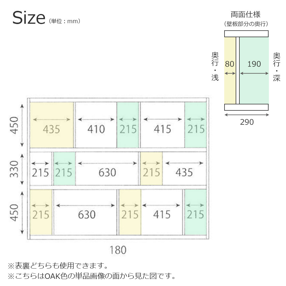 ※表裏どちらも使用できます。こちらは単品画像と同じ面から見た図です。壁板部は奥行きが表裏で異なります。