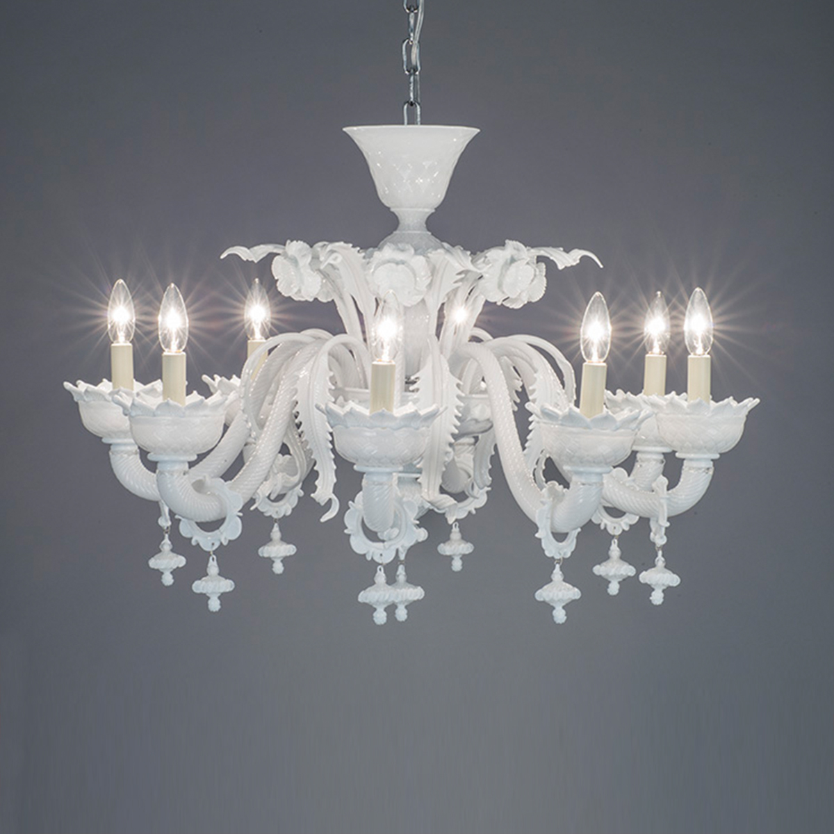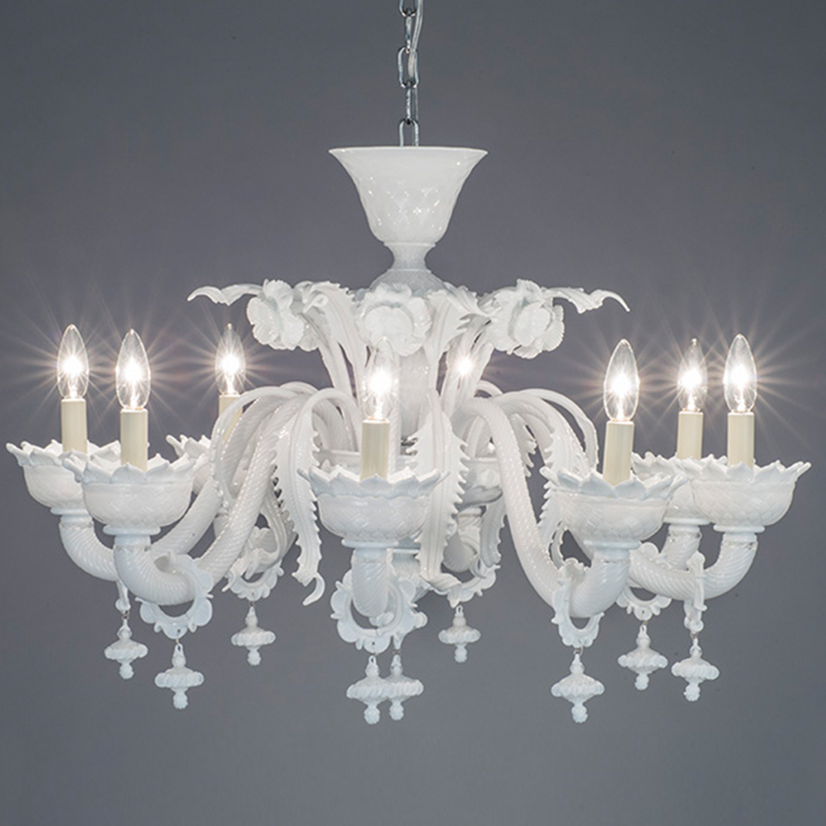 伝統的なヴェネチアガラスの工場としてスタートし、1947年に現在の照明事業に至ります。伝統的な技術、製法を守り続け、さらには、近年のモダリズムを注入した斬新なデザインまで多岐にわたります。こちらは、ヴェネチアガラスならではの洗練された表情がゴージャスに空間をドレスアップしてくれます。器具高が高く、吹き抜けでしか使用が困難であったデ・マーヨのシャンデリア。マンションなどの普通のお部屋でも使用できる大塚家具オリジナルデザインを実現しました。まばゆい光を放つシャンデリアの魅力を存分にお楽しみいただけます。