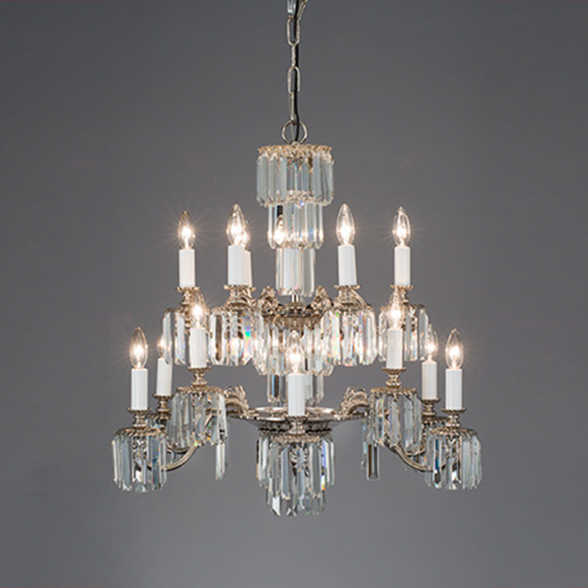 真鍮鋳物を得意とするスペイン・リッペルランプ社のシャンデリア。