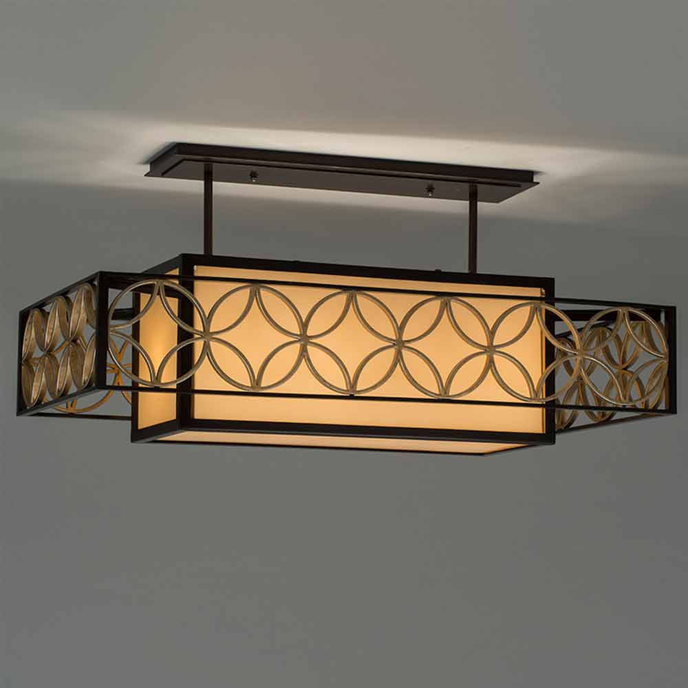 オーガンジーセードの外側に浮かび上がった装飾的なフレームによって器具本体の奥行きを感じられます。ブロンズとフレンチゴールド色の美しい組み合わせが空間を引き立てます。和の要素も感じられるなど、あらゆるテイストのインテリアに合わせられます。