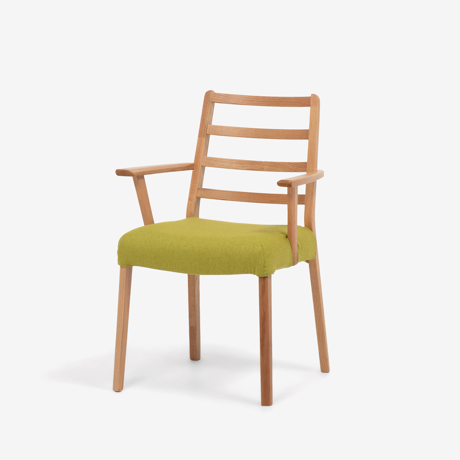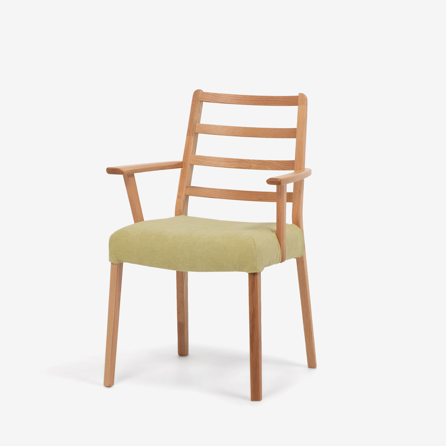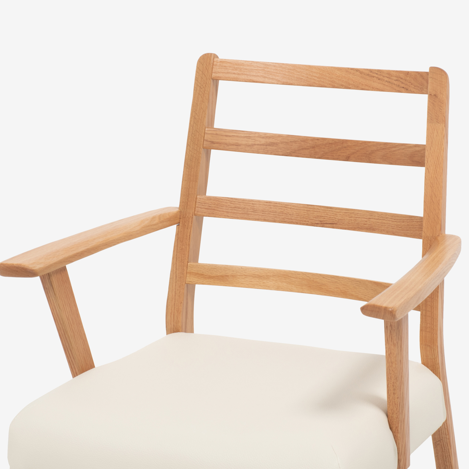 ダイニングチェア(肘付き)「シネマ Aタイプ」レッドオーク材 ホワイトオーク色 座面PVC