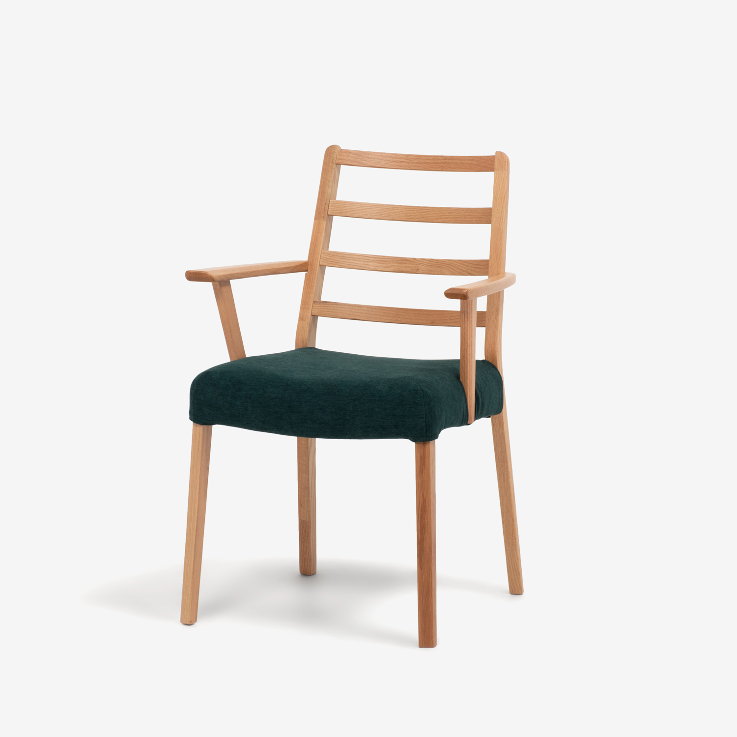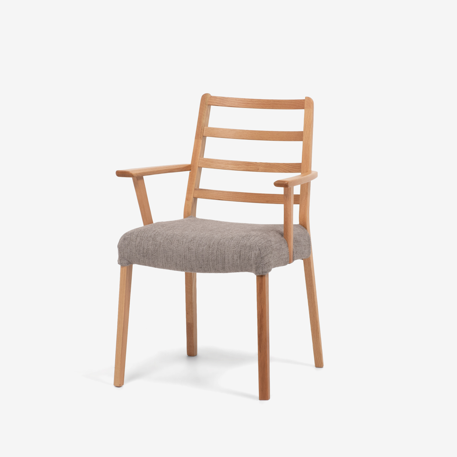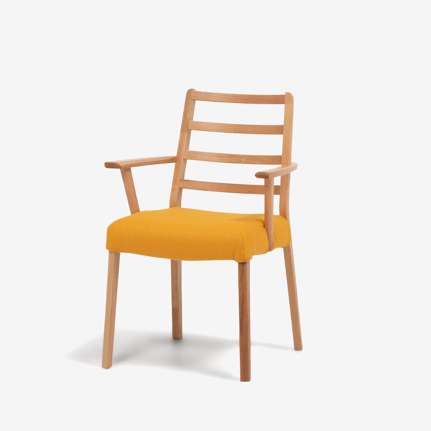 ダイニングチェア(肘付き)「シネマ Aタイプ」レッドオーク材 ホワイトオーク色 座面PVC