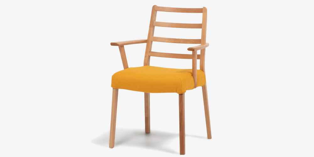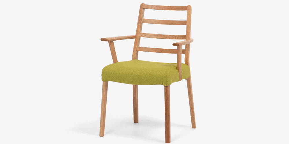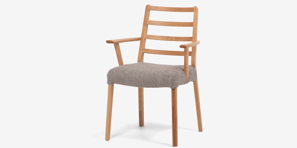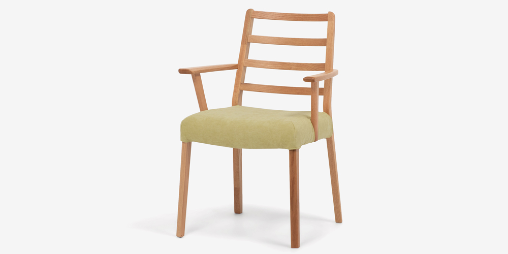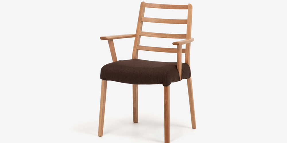 無垢集成材を使用した背もたれはレッドオーク材の木目があたたかみのある印象を与えてくれます。