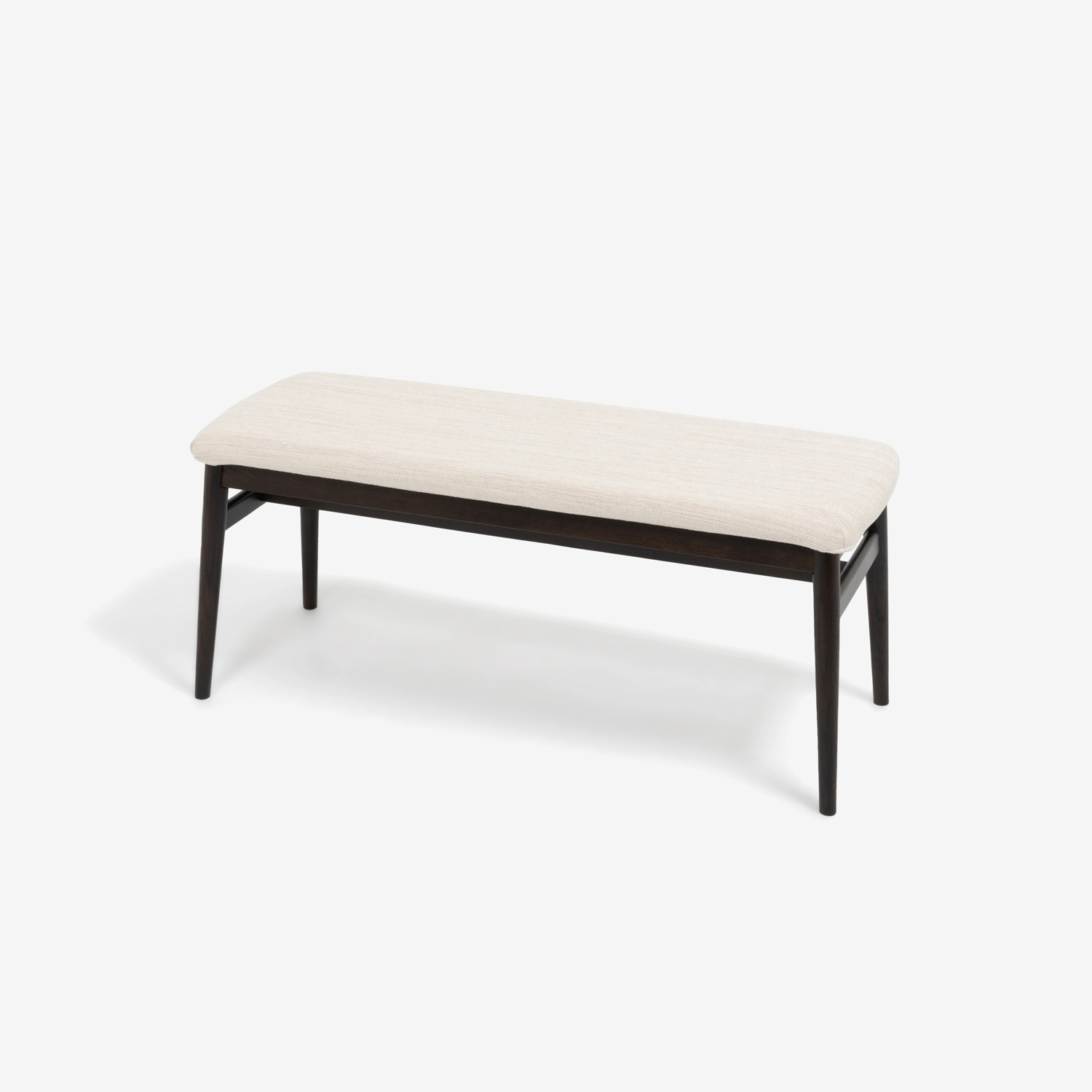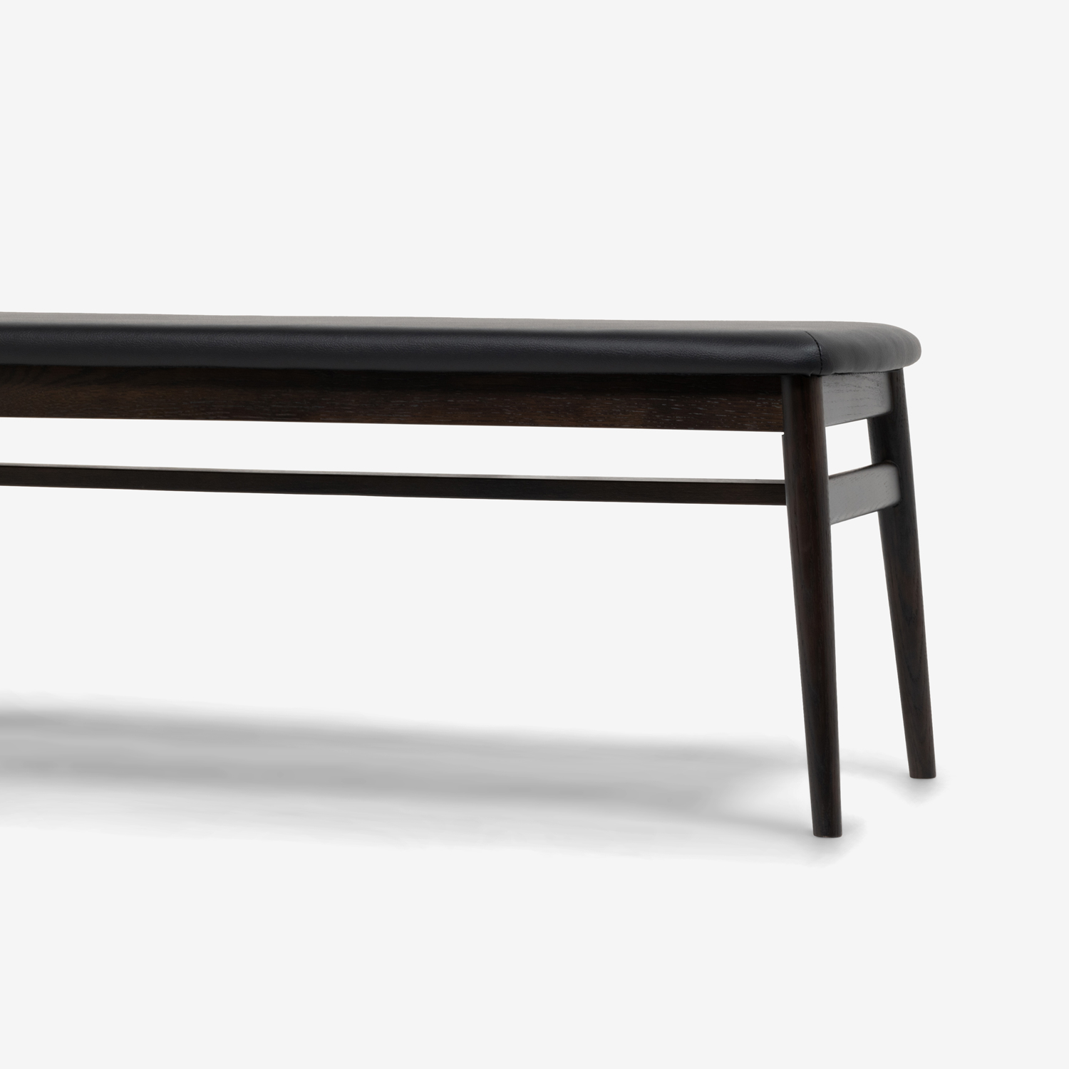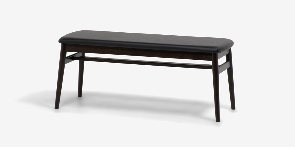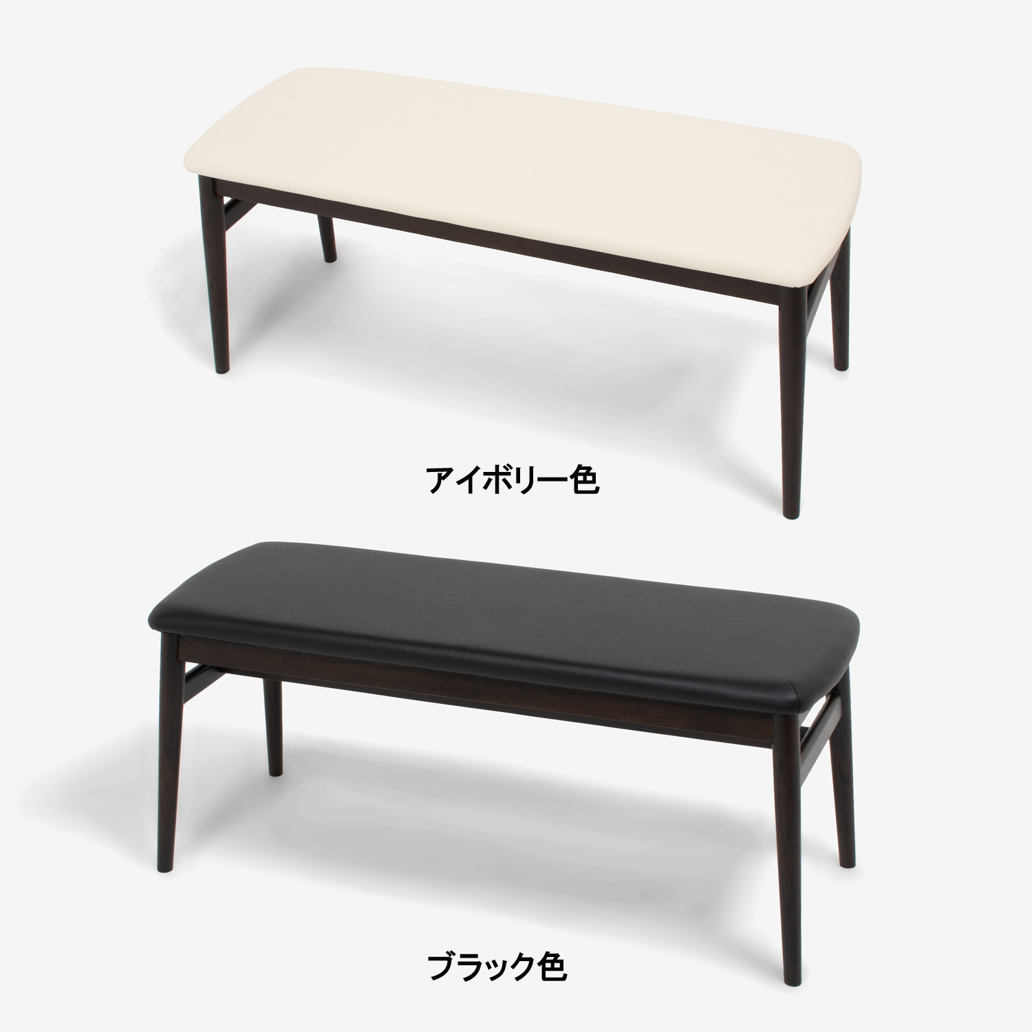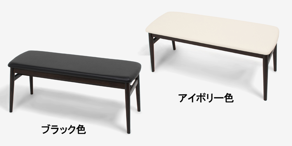 レッドオーク材の無垢材を使用した天然木のあたたかみを感じるカバーリングタイプのベンチです。座面はPVC素材のブラックとアイボリーの2色から選べ、オプションでPVCの座面の上に布カバーを取り付けることができます。