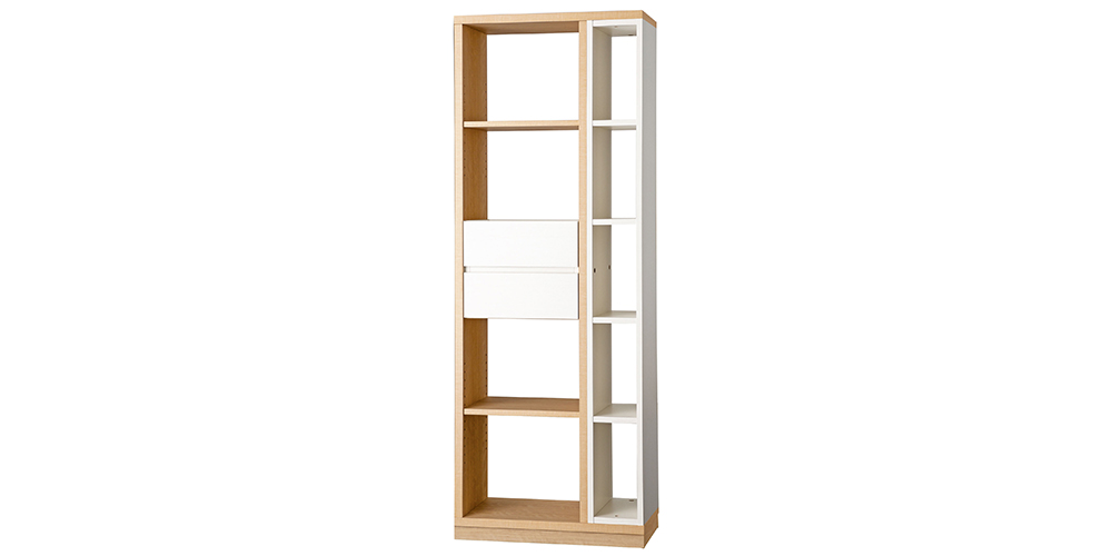 壁付けで設置することももちろん可能です。横に連続して並べるとき、ボックスを等間隔に設置でき美しいシンメトリーになります。引き出し付きなので、文具や医薬品など細かいものも収まってリビングもすっきりします。市販のボックスファイルや収納ケースなどが綺麗に収まるサイズで設計されていますので、効率よく美しい収納が実現します。