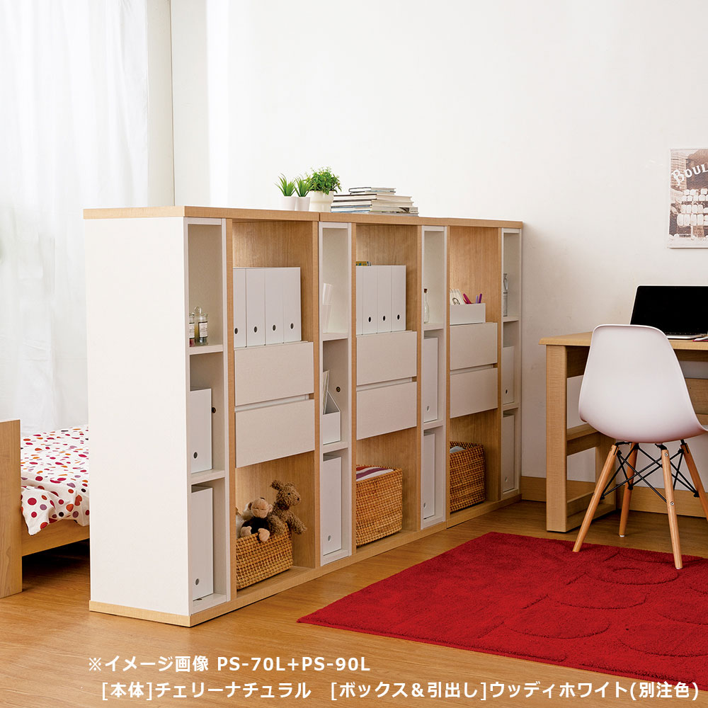 ※画像は「PS-70L」[本体]チェリーナチュラル色[ボックス&引き出し]ウッディホワイト色、「PS-90L」[本体]チェリーナチュラル色[ボックス&引き出し]ウッディホワイト色を組み合わせています。小物類は商品に含まれていません。