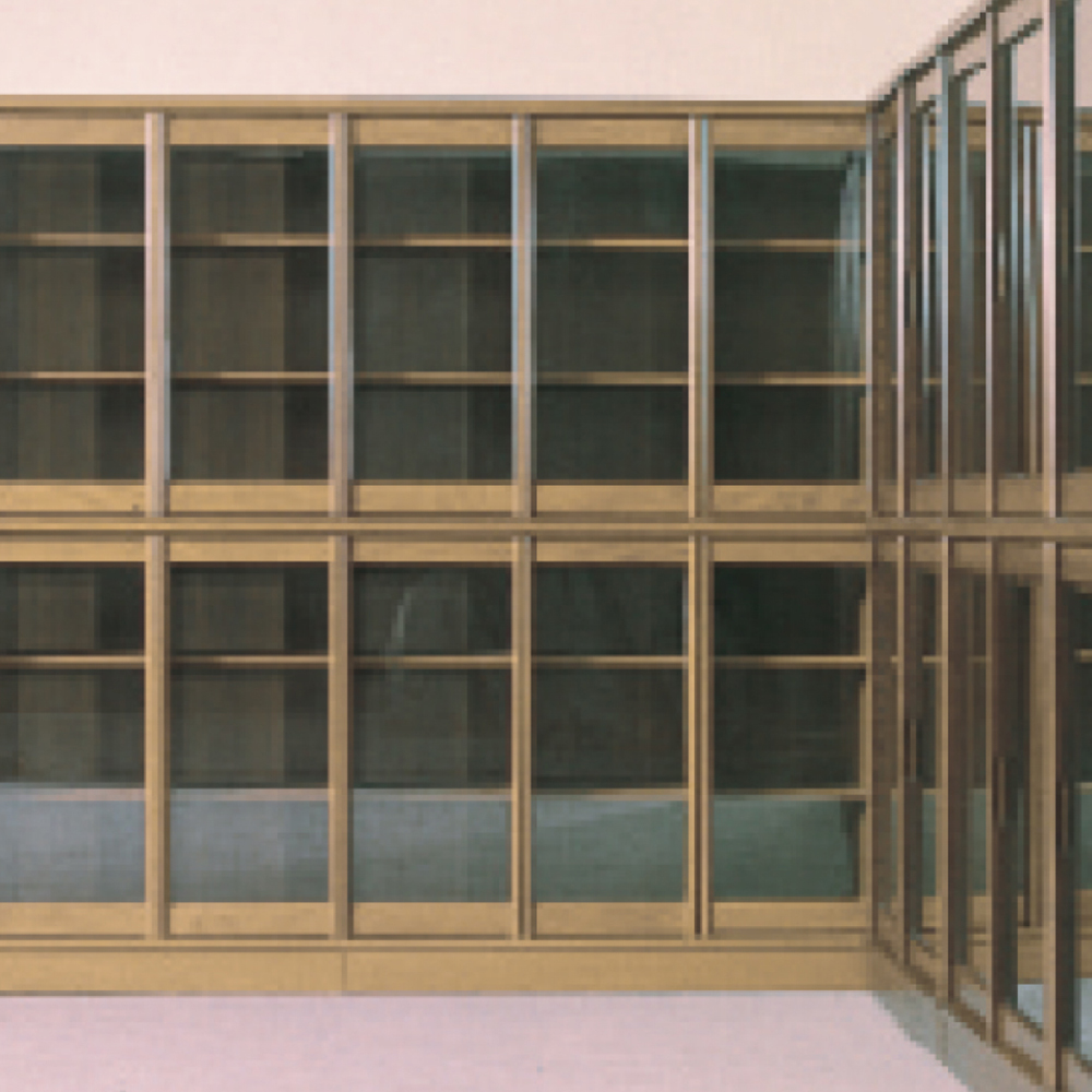 同じモジュールの扉の連続が、ベーシックな中にもシンプルで美しいデザインを生み出しました。役員室の壁面やワンランク上の書庫などに最適の書棚です。