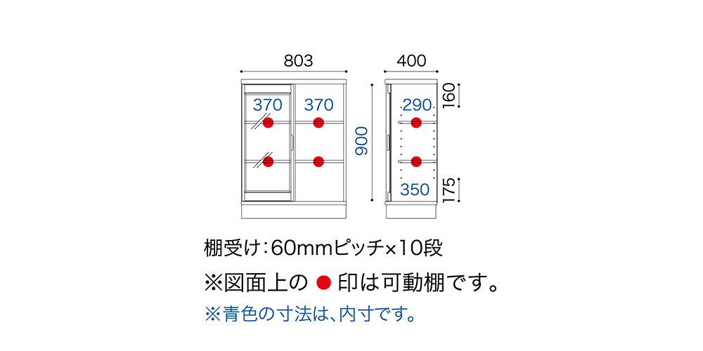 扉の幅は全て同じ40cm。ワイドの違う製品を並べても、すっきり美しく見えます。