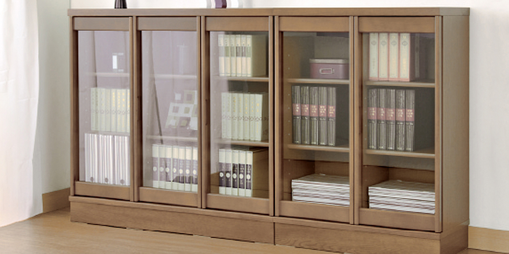 同じモジュールの扉の連続が、ベーシックな中にもシンプルで美しいデザインを生み出しました。役員室の壁面やワンランク上の書庫などに最適の書棚です。