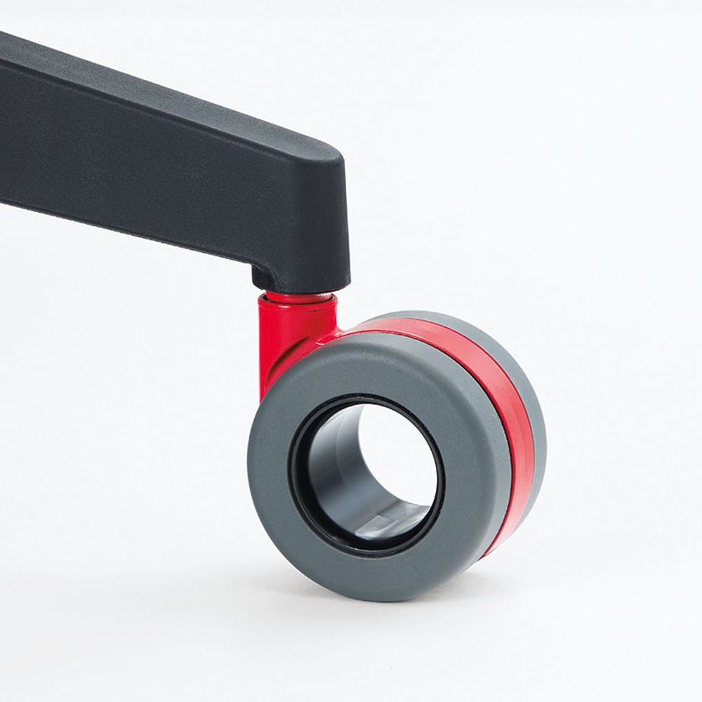 本体のアクセントカラーに合わせた中空キャスターを装備。プレイ環境をより充実させるためにデザイン性にもこだわります。