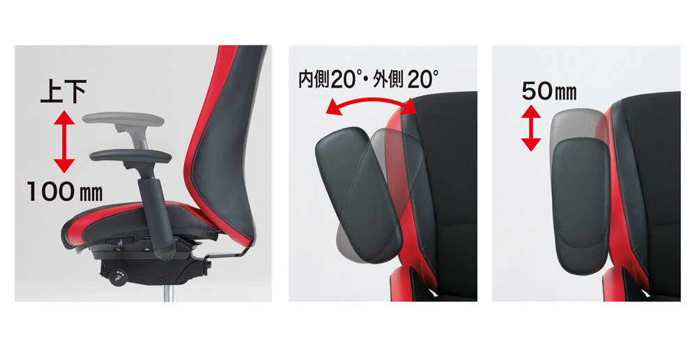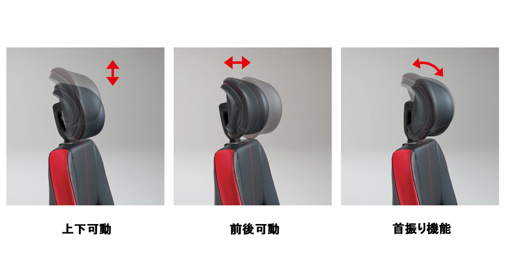 上下はもちろん、前後への移動や首振り機能も備え、絶妙なポジション設定が可能です。