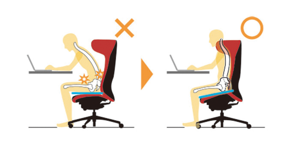 おなかの圧迫が解消されます。また、骨盤が起きて背骨のS字が保たれ、腰の負担が軽減されます。