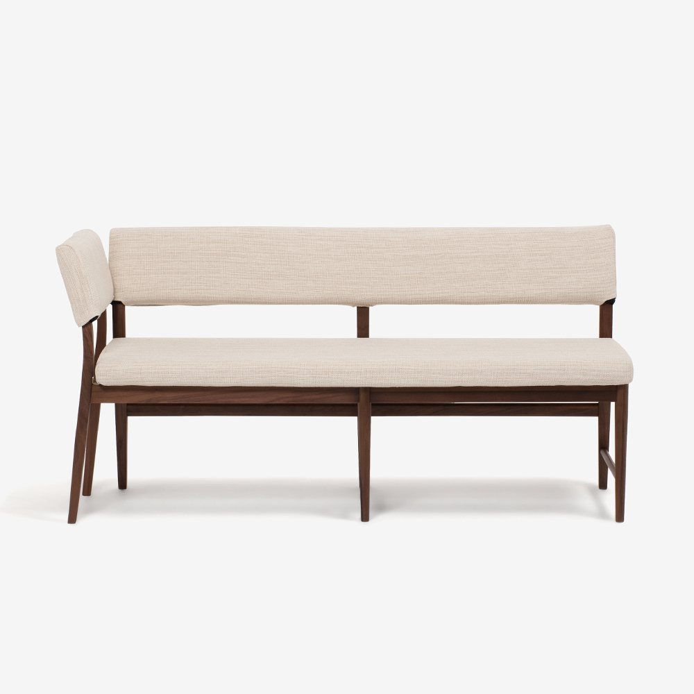 ゆっくりくつろげる背もたれ付きのダイニングベンチ「フィル2」片肘・背付きタイプ