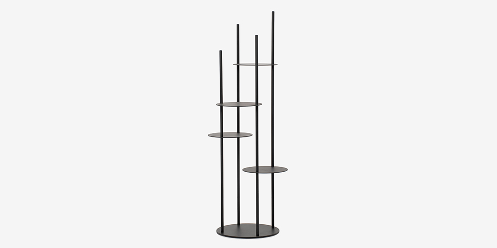 「サークルズ」の名の通り、円型をモチーフにされた4枚の棚板はそれぞれの位置と高さをずらしており、長さの違うロッドと相まって視覚的に動きのある印象を与えられます。サークルズはコンパクトなサイズで、その独創的なデザインは飾る物をより素敵に演出してくれます。フラワースタンドだけではなくオープンシェルフとしてもおすすめです。