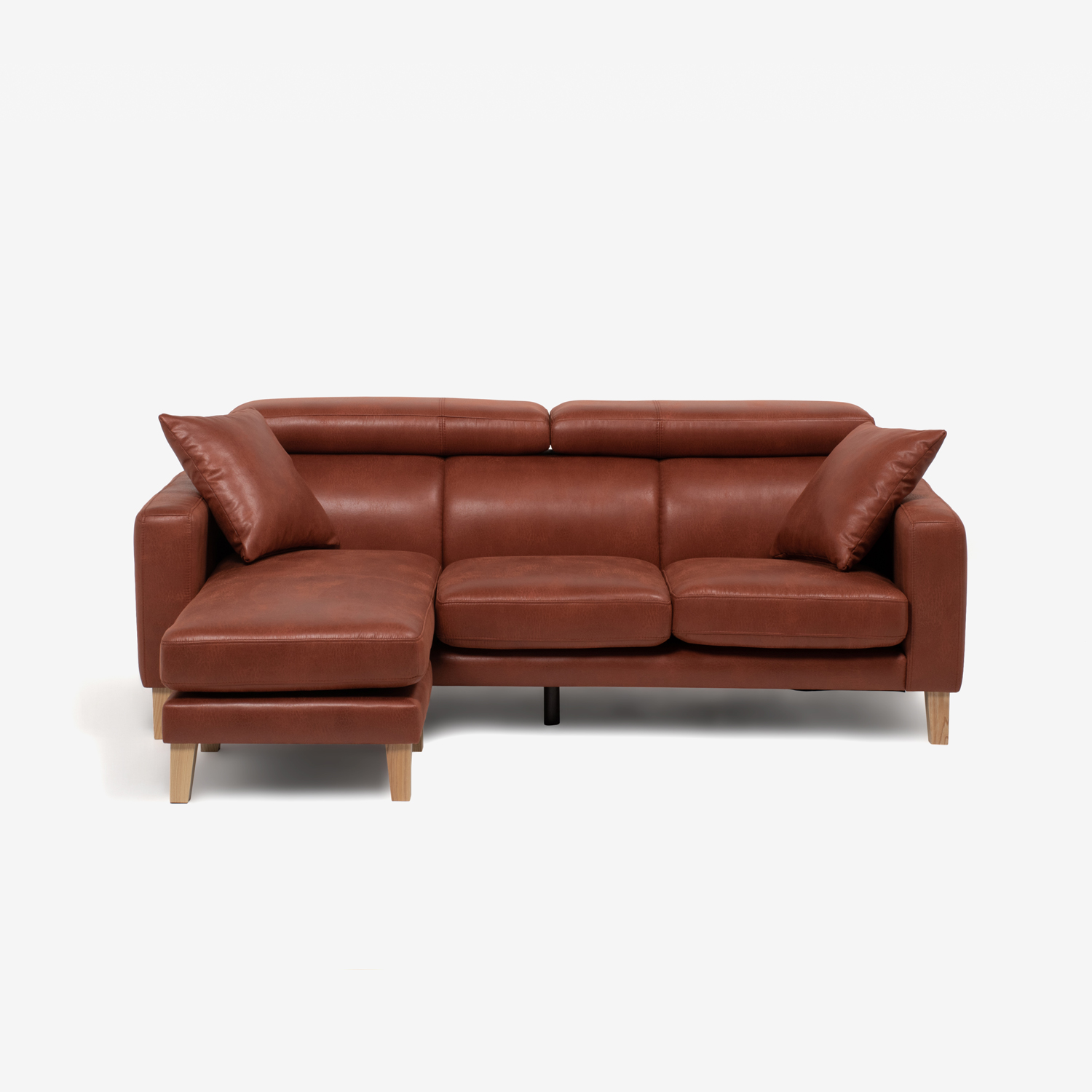 座面の組み替え機能、ヘッドレストの可動機能のあるカウチソファです。コンパクトでレイアウトしやすいサイズです。