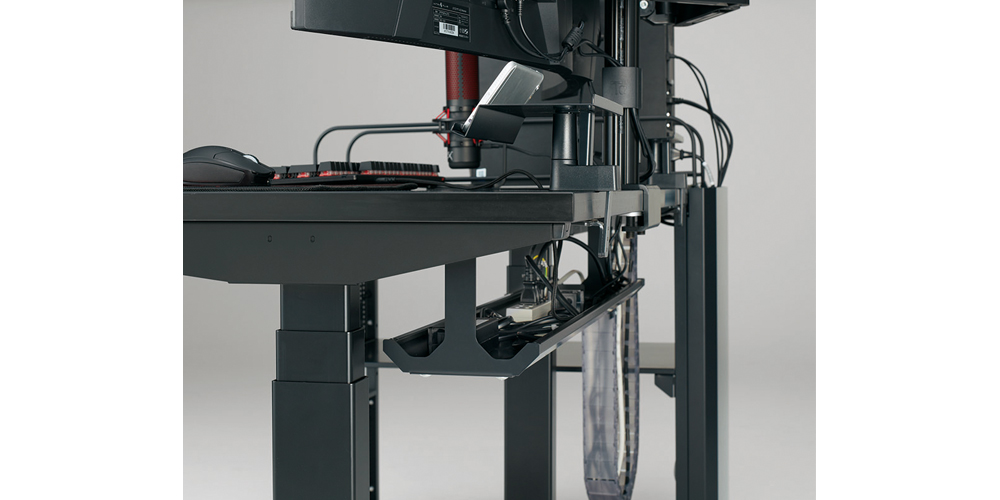 ケーブルの余長は天板裏の配線トレーに収めることができます。