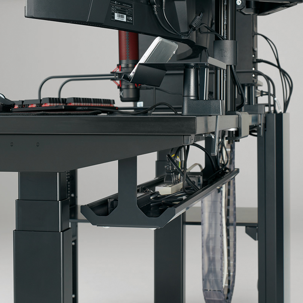 ケーブルの余長は天板裏の配線トレーに収めることができます。