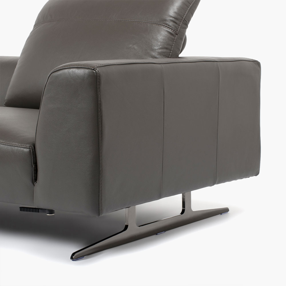 スタイリッシュな脚部が浮遊感を演出する本革張りのソファです。シリーズ商品と組合わせて大きなコーナーソファやカウチソファとしてもご使用いただけますし、単体でおしゃれな片肘ソファとしてもご使用いただけます。グラファイトカラーの本革とブラックニッケル色の金属脚がモダンな印象です。