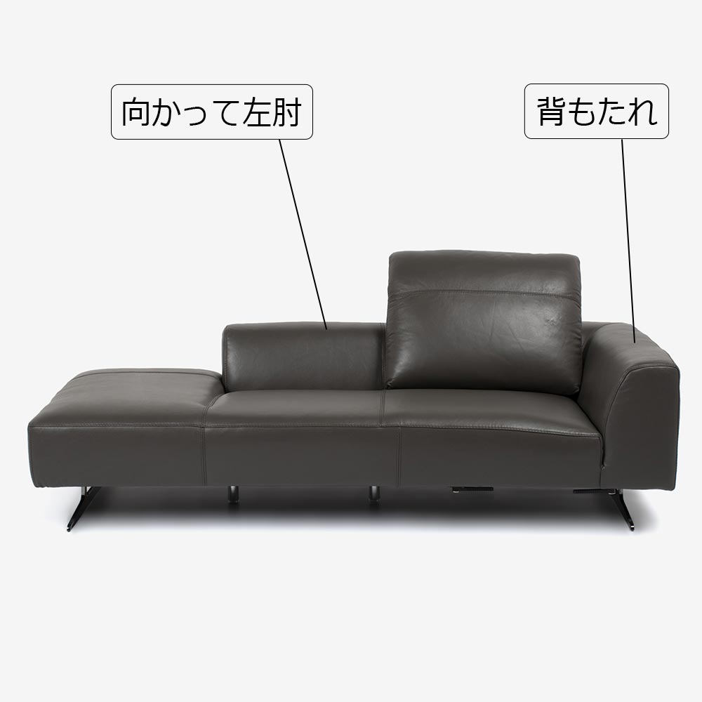 カウチソファ背付き大(向かって左肘)「L/S 59(エルエス59)」3人掛け 革グラファイト色 #J-112E