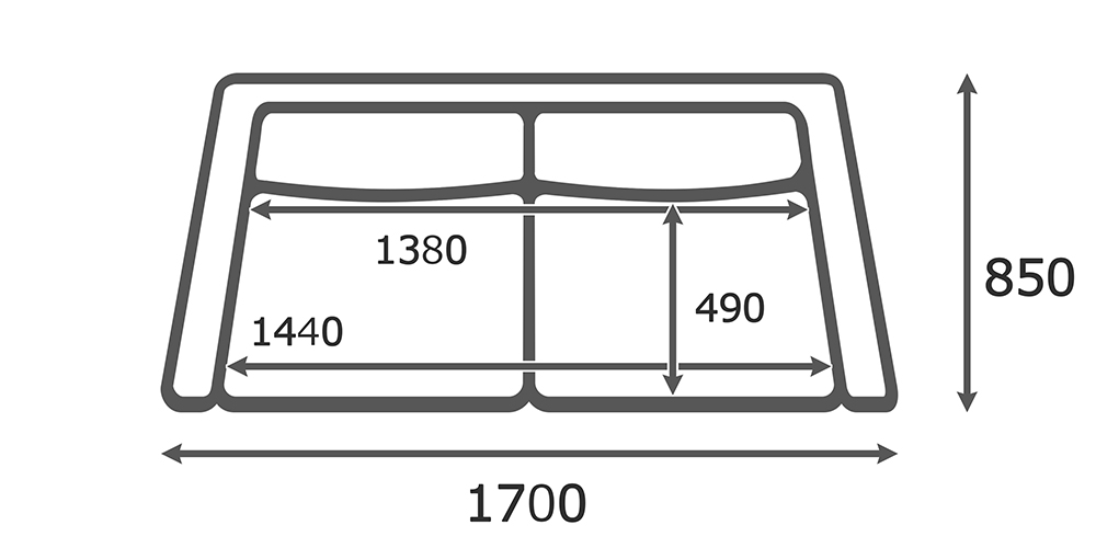 内部構造:ウレタン(30kg/m3)、ポリエステルファイバー、ウェイビングテープ