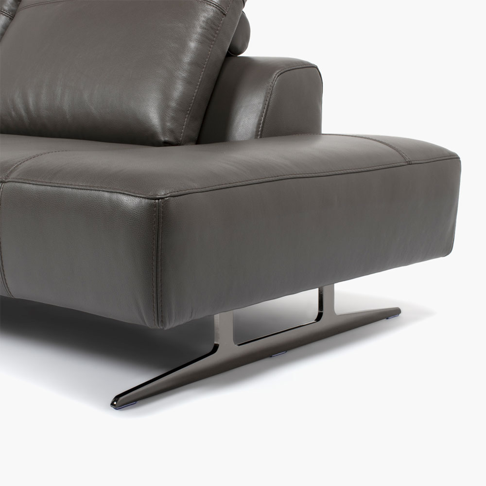 スタイリッシュな脚部が浮遊感を演出する本革張りのコーナー型のカウチソファです。グラファイトカラーの本革とブラックニッケル色の金属脚がモダンな印象です。