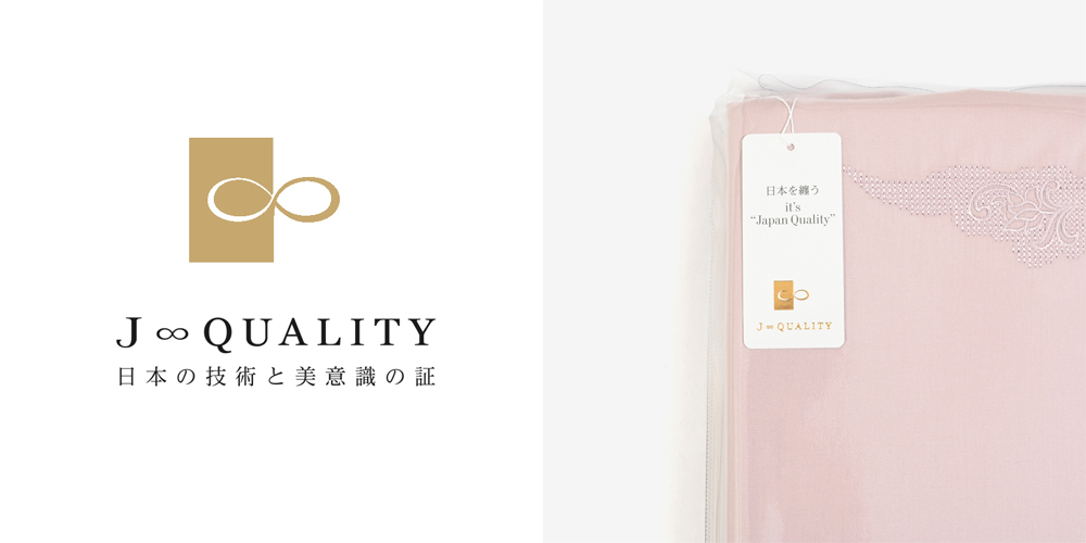 「J∞QUALITY」は、日本(Japan)が誇る、品質(QUALITY)を限りなく(∞)追求して、従来のMADE IN JAPANを超え、「織り・編み」「染色整理加工」「縫製」「企画・販売」まで、すべてを日本国内で行った商品のみ「J∞QUALITY認証商品」の統一ブランドとして認証されます。これは、モノづくりにおける品質を限りなく追求した日本製であること、各工程の背景が見えること、安心して購入できる安全な商品であることを意味します。
