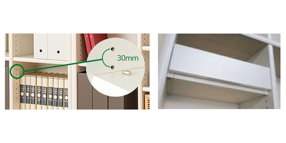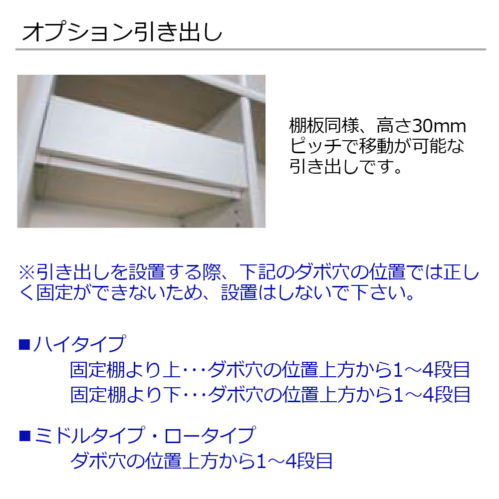 書棚Mミドルタイプ・Lロータイプ:ダボ穴の位置上方から1〜4段目