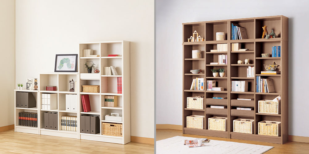 ライフスタイルに合わせて必要な時に必要な数だけ追加できるので、本棚の空いたスペースを有効に活用することができます。 自由に組み合わせてお好みのセッティングをお楽しみください。※画像はイメージです。書棚本体は別売りです。