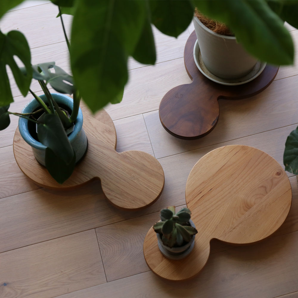 住まいのあちこちに自然と馴染む 天然木の風合いがグリーンを引き立てるプランターベース。