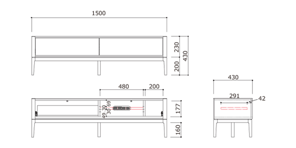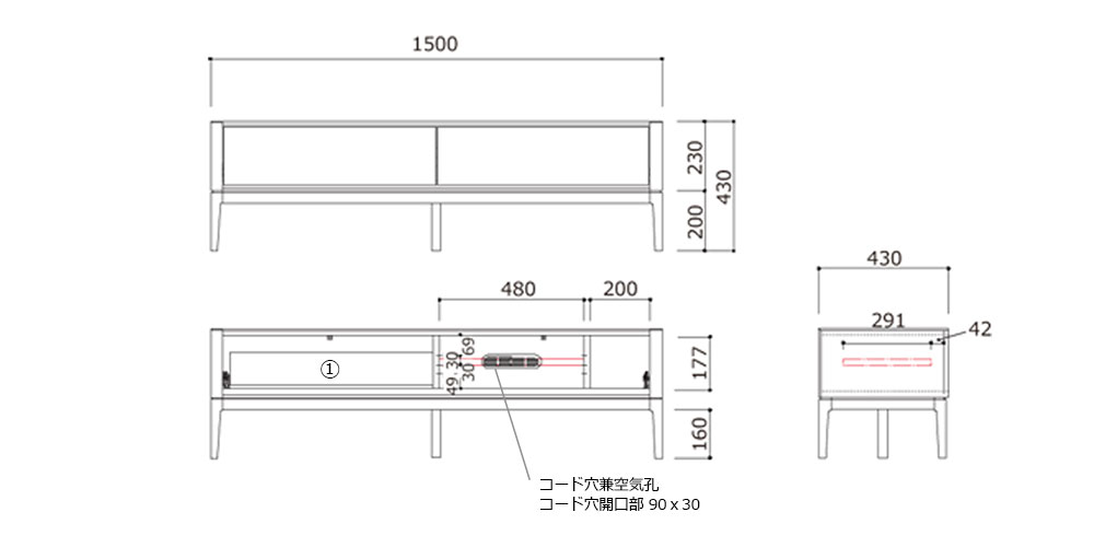 | 幅150cmタイプ | 幅1500x奥行430x高さ430 |