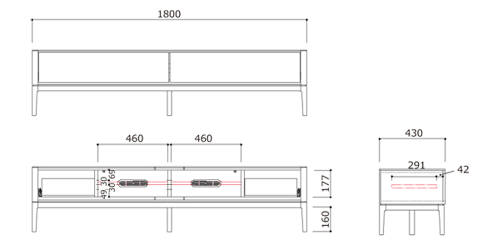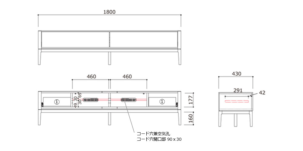 | 幅180cmタイプ | 幅1800x奥行430x高さ430 |