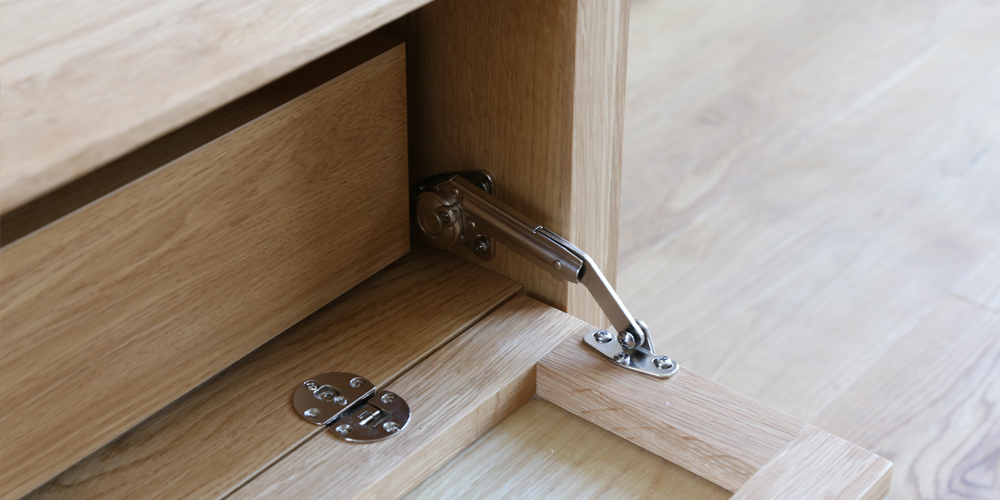 扉内の引き出しにはフルオープンスライドレールを採用しており、スムーズに開閉できます。