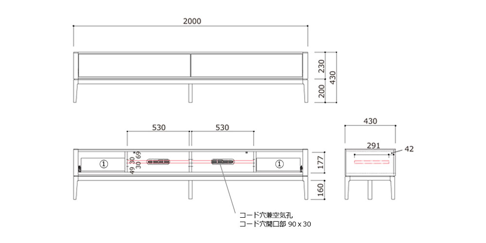 | 幅200cmタイプ | 幅2000x奥行430x高さ430 |