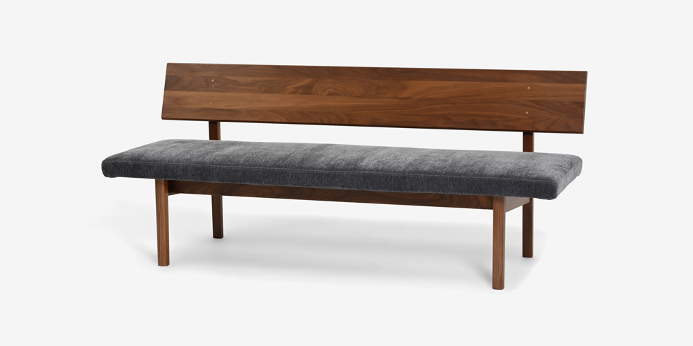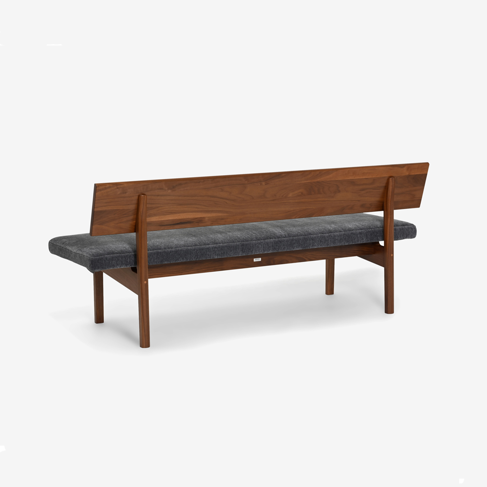 ウォールナット材の木目が美しい奥行65cmのゆったりとした背付ベンチです。