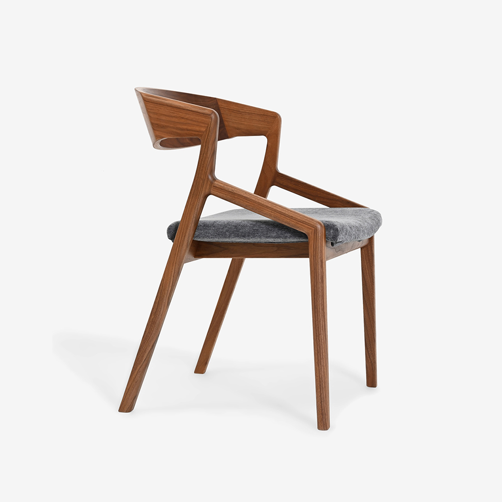身体を包み込む、ゆったりとした背をもつダイニングチェアです。パーソナルチェアのようなすわり心地にダイニングチェアとしての軽快さを併せ持ちます。