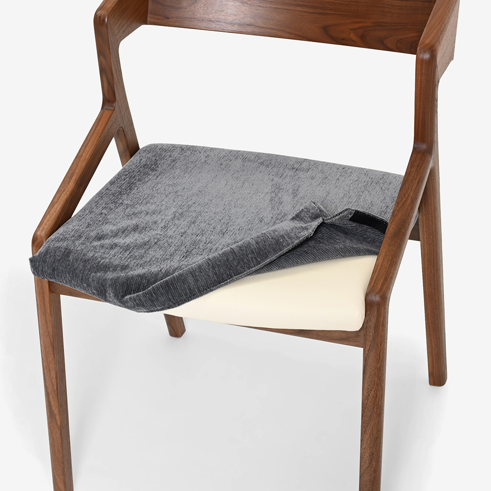 座面裏のネジを外すことで座面が外れます。座面カバーは外して洗えるウォッシャブル仕様です。