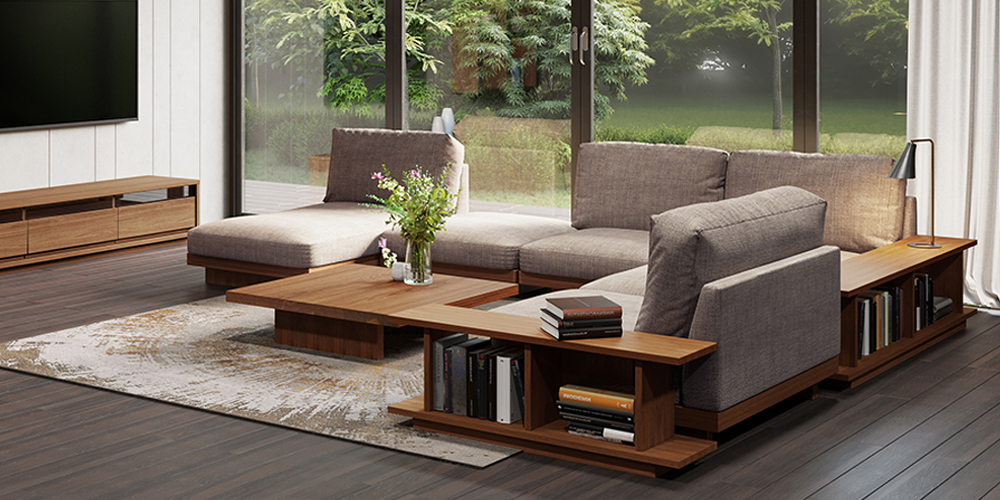ソファバックに配置し、ベンチとしてもご使用いただけます。ソファを中心としたリビングルームのレイアウトをお楽しみいただけます。※画像はイメージです。