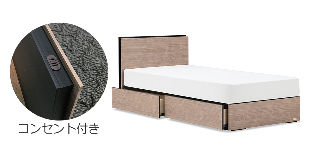 FranceBed(フランスベッド)ベッドフレーム「BG-001 DR」引出しタイプ すのこ床板 コンセント付き アッシュグレー色