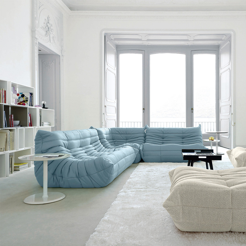 シリーズのアイテムを組み合わせることで、自分のスタイルに合わせたくつろぎを叶えることが出来ます。スプリングを使用していない為一般的なソファよりも軽量で、レイアウトの変更も容易です。※画像は3人掛け、1人掛け、コーナーを組み合わせています。