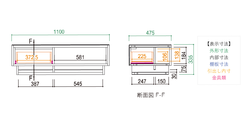 前面の引出しをはじめ、前後から使えるオープン部により使い勝手も十分に確保しています。