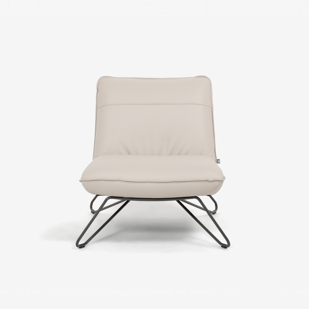 スツール「HCKMET-394」はエレガントなデザインで、他の家具と組み合わせても単体で配置しても印象的な姿は変わりません。その魅力はボリュームに富んだクッションとアンバーグレーの繊細なワイヤーフレームとの組み合わせによって生み出されます。※画像はイメージです。アームチェアは別売りです。