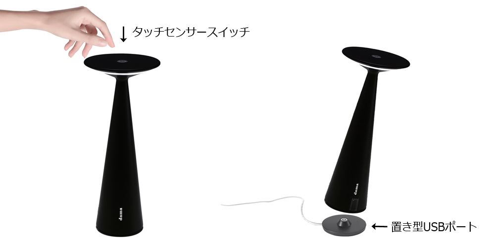 LEDテーブルスタンド「ZAF-DAMA-BK」ブラック USB充電式