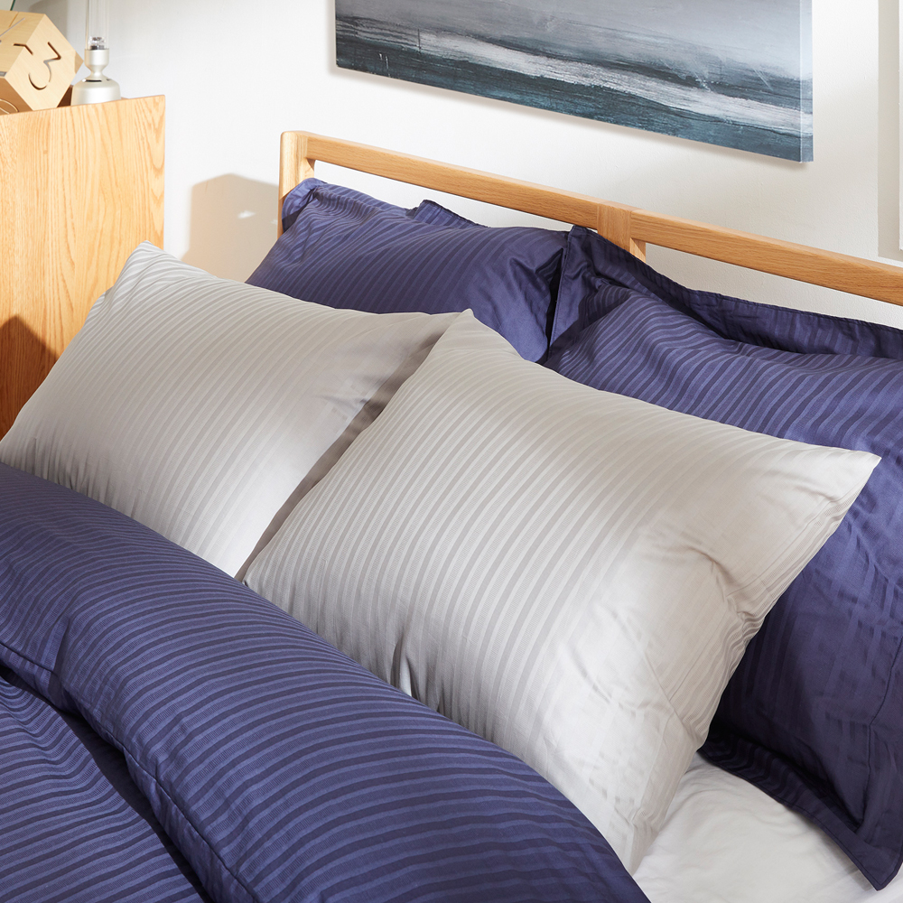 打ち込み本数300本のサテン地は滑らかな肌触りです。光沢感とストライプの織りから高級感も感じられます。