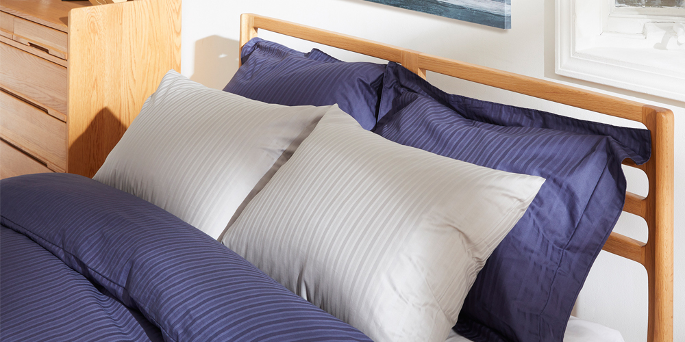 打ち込み本数300本のサテン地は滑らかな肌触りです。光沢感とストライプの織りから高級感も感じられます。