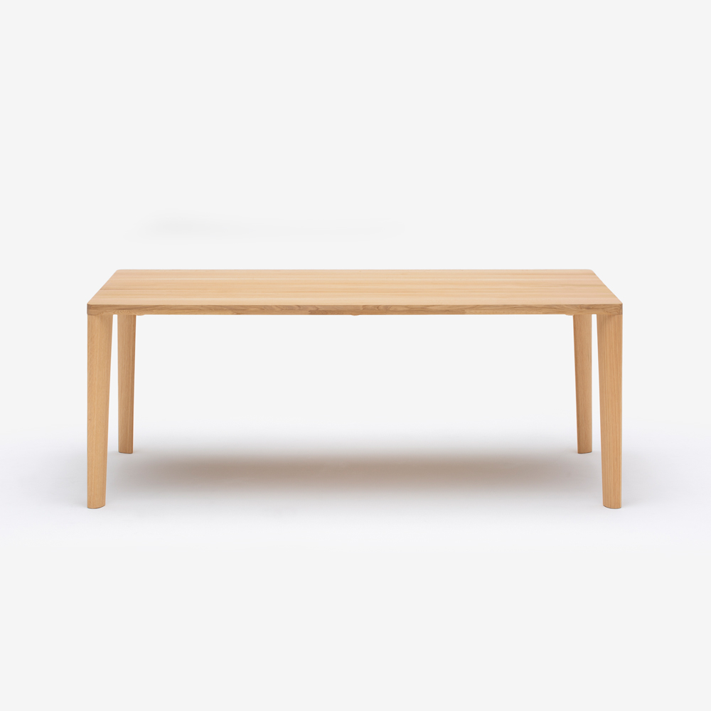 長手方向・妻手方向ともに、天板を船底型に削り込んでおり、天板から脚へのつながりが美しいデザインとなっています。全5サイズの豊富なバリエーションも魅力です。