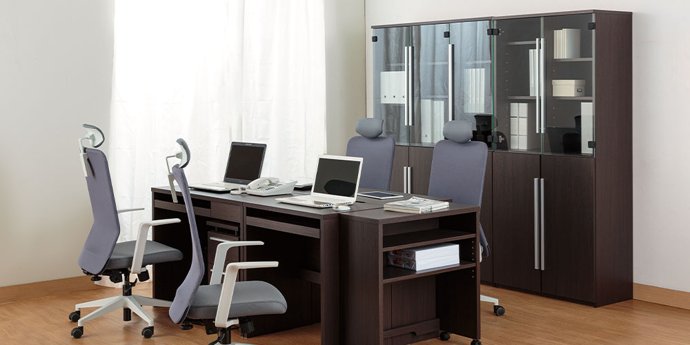 ※画像は「K's way Com-1」シリーズ・ウッディウェンジ色のコーディネートイメージです。本ページの商品は上下共にガラス扉の仕様です。