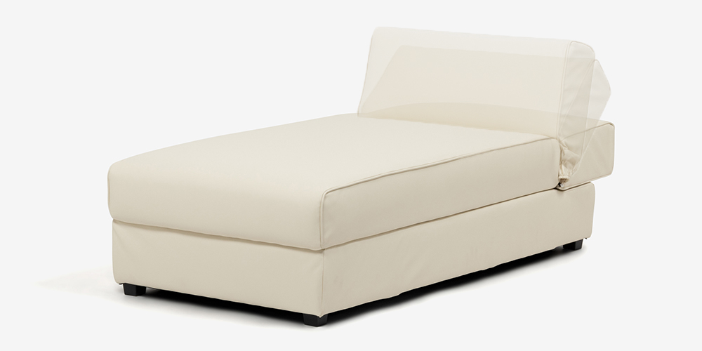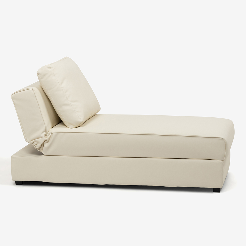 アームレスカウチ「パズル」ソフトレザー アイボリー色 収納付き
