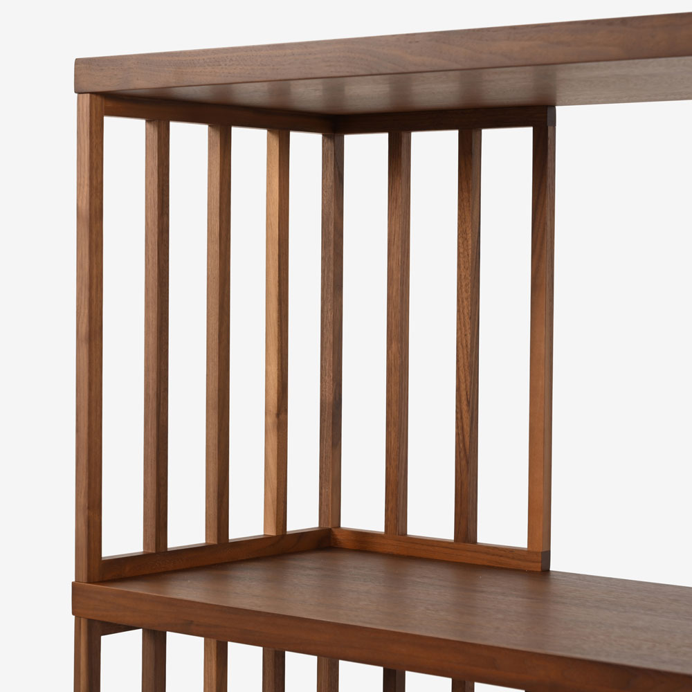 細めのフレームにより、背面まで視界が通り開放的な印象に。 大型家具にありがちな圧迫感を感じさせません。キッチンとダイニングの間仕切りとして、 ワンルームでのベッド周りとリビングの間仕切りとしてもおすすめ。シンプルなデザインで置くものを選ばず、幅広い「見せる収納」をお楽しみいただけます。