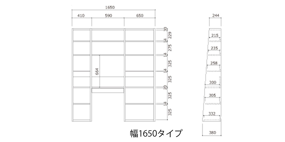 一体化したスタイリッシュな棚が、壁を覆うように造られた壁面収納で ディスプレイ収納を楽しみつつ、自分のワークスペースが確保できます。上段になるにつれて細くなる構造のため、本や雑貨などのディスプレイするアイテムをより引き立たせてくれます。